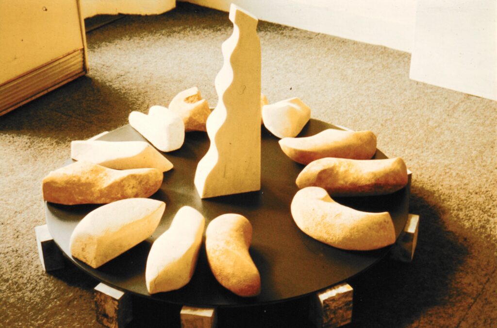 The 1960s were Jonah Jones’s single most productive decade, and the years when he reached the peak of his powers. While much of the time was taken with commissions for churches, he also produced a considerable volume of his own sculpture. By the beginning of this period he was moving away from the essentially figurative, towards a greater austerity and purity of form, purged of what he called “emotive overtones”. From there his style evolved quite rapidly into abstraction, showing a confident mastery of idea and execution.